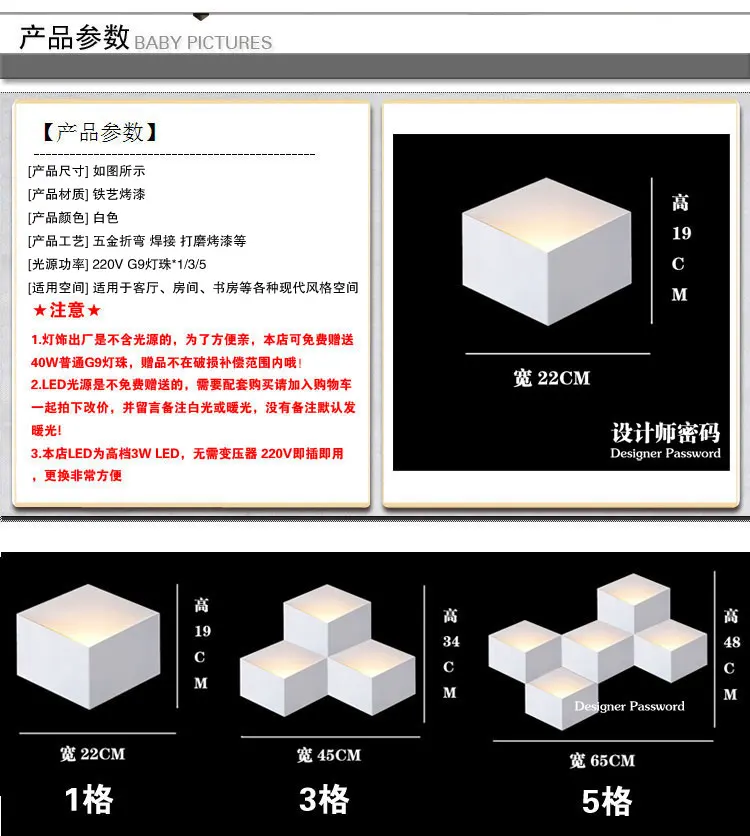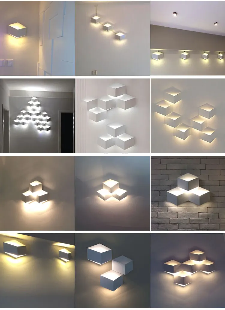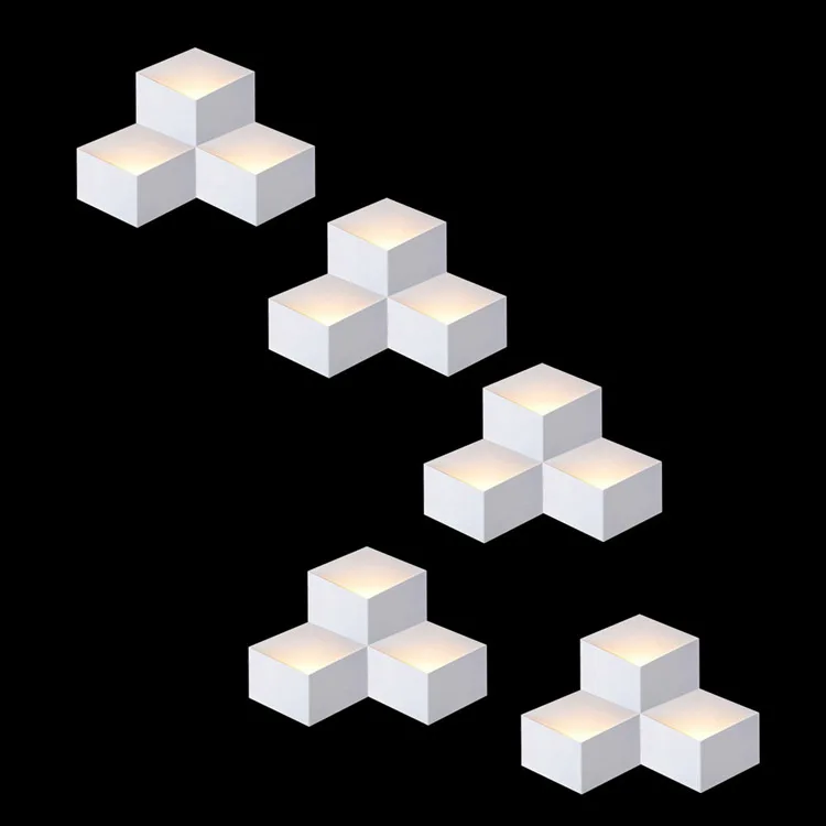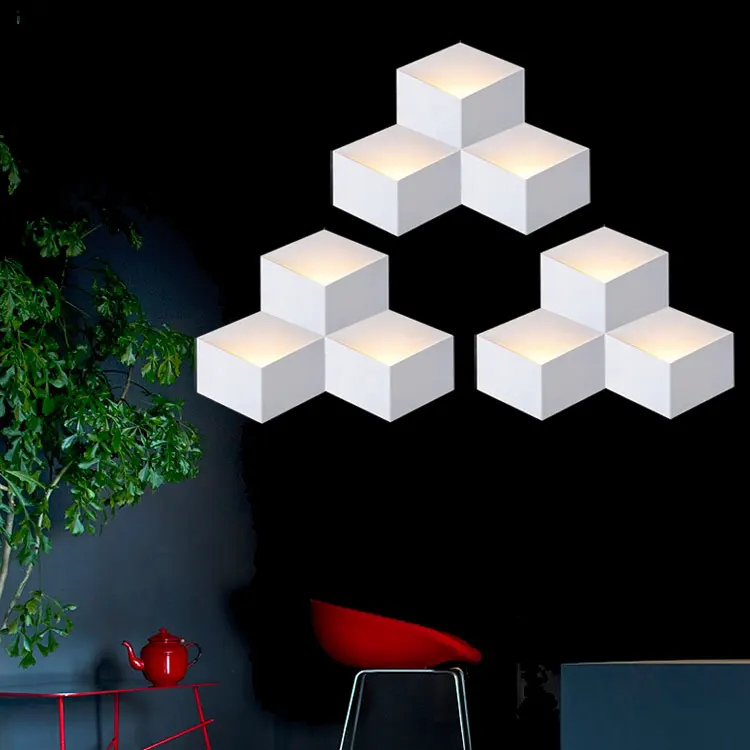 1/3/5 heads Designer DIY Led 3d Combination Of Decorative Wall Geometry Square Wall lights Geometry Square Grid Box Indoor Light