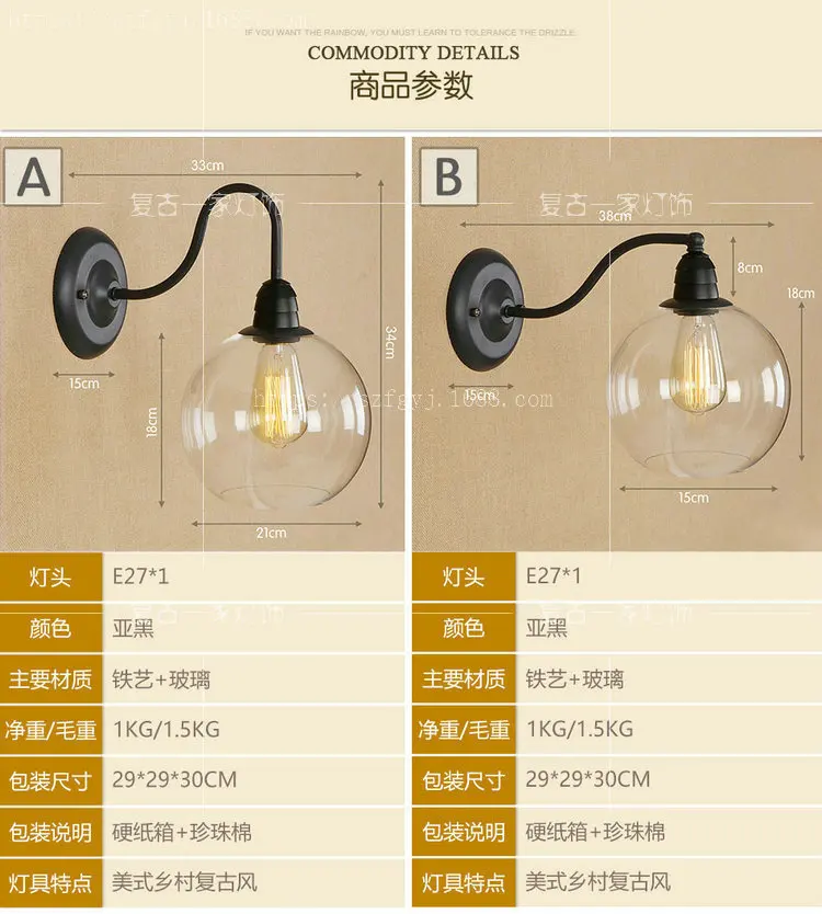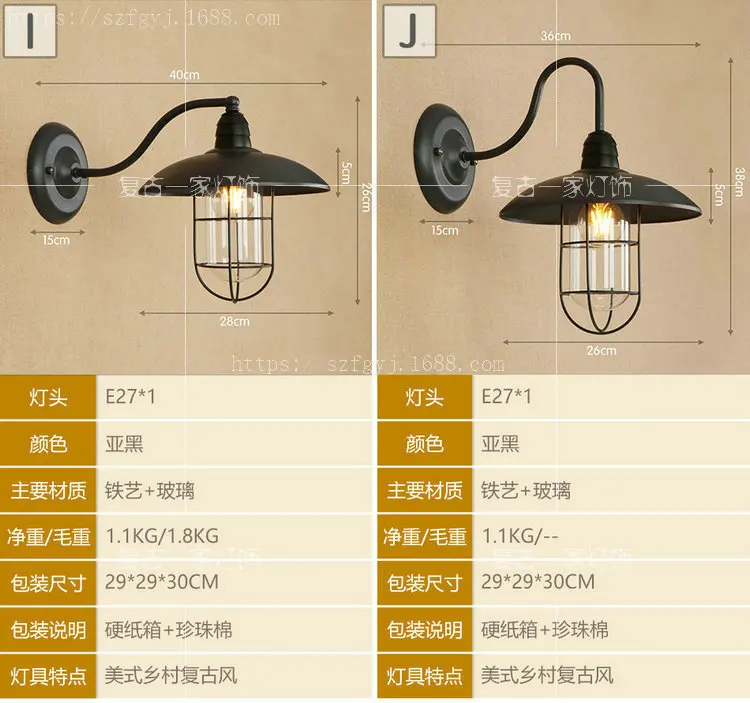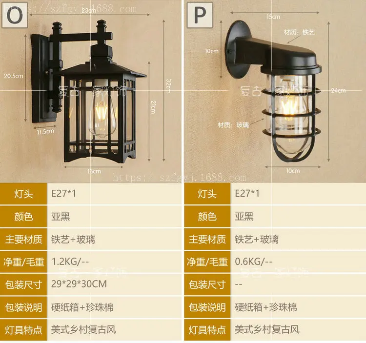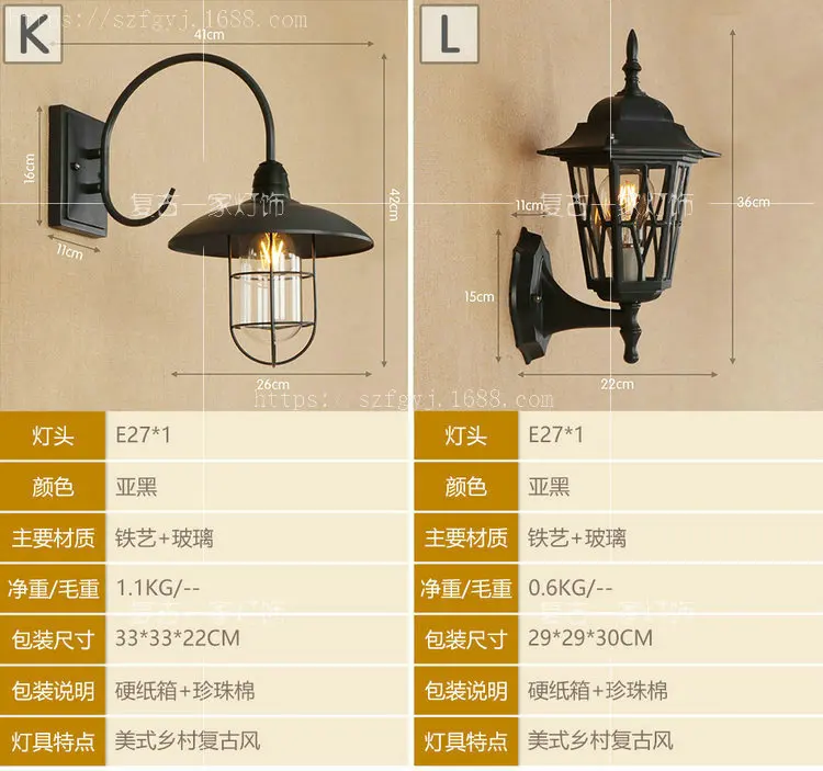 AC 110v-240v Indoor Outdoor Vintage Waterproof Wall Lamp E27 Led Bulb Black Metal Body Retro Light Foyer BedRoom Diningroom