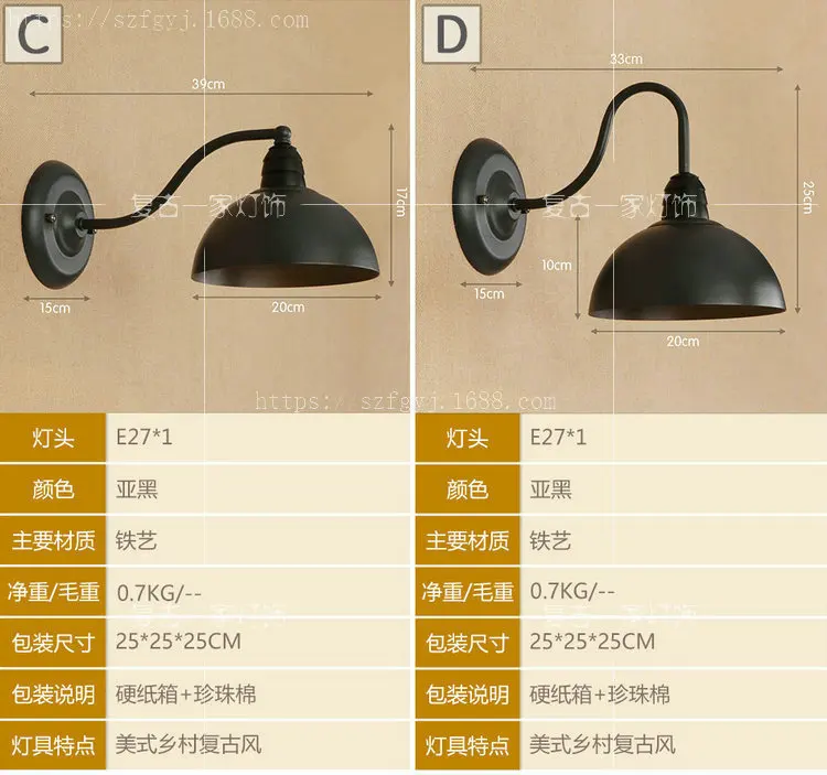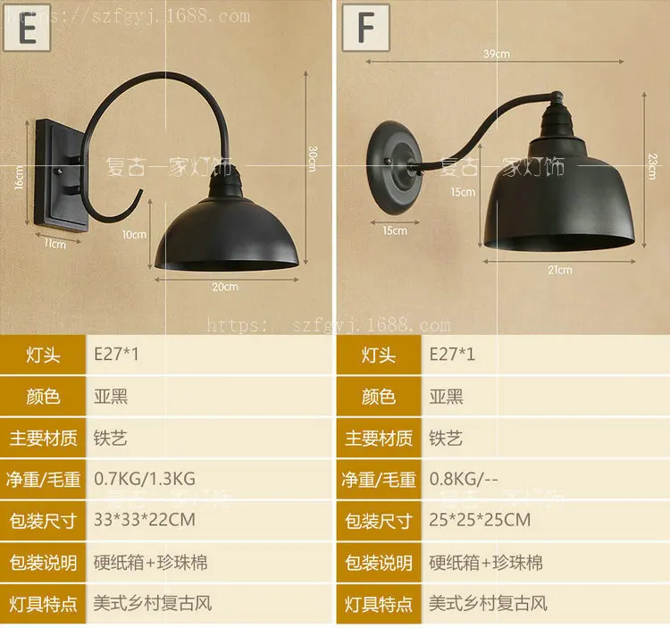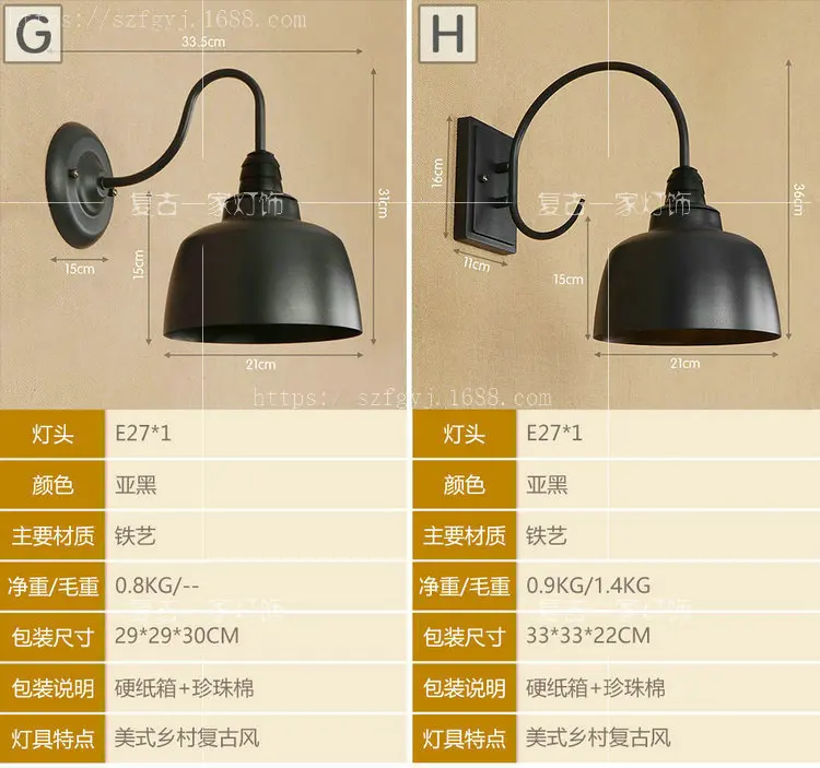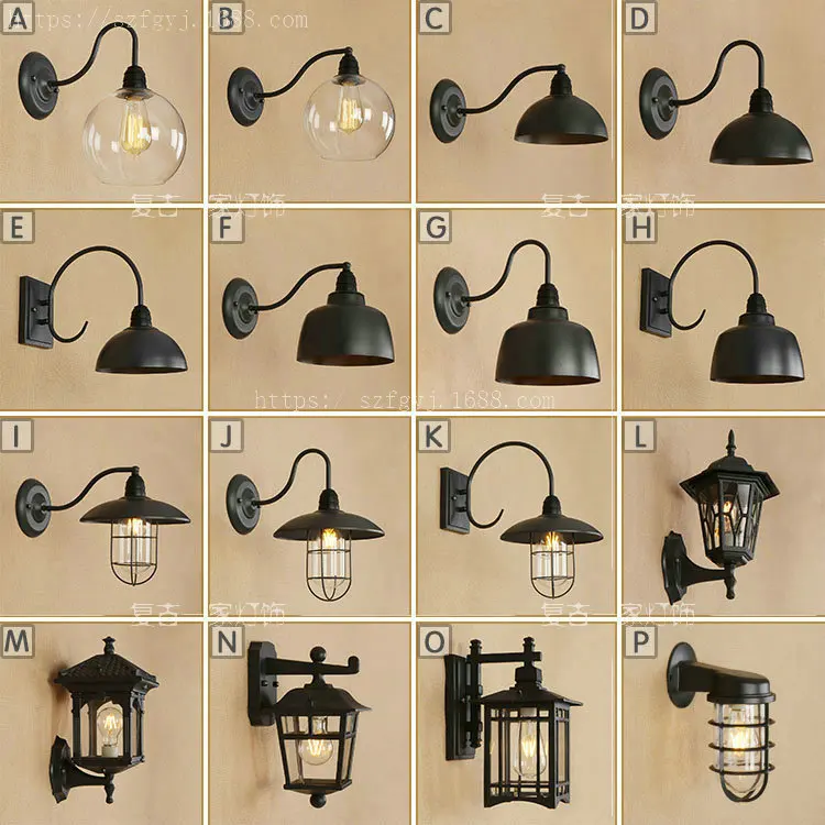Cheap AC 110v-240v Indoor Outdoor Vintage Waterproof Wall Lamp E27 Led Bulb Black Metal Body Retro Light Foyer BedRoom Diningroom