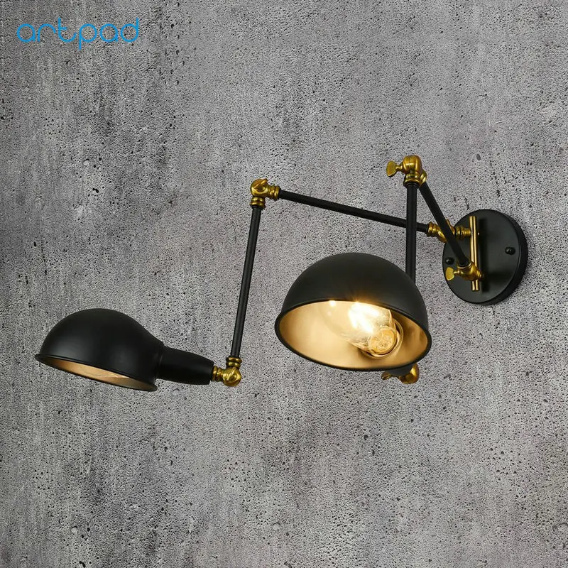 Artpad American LOFT Industrial Retro Wall Lamp AC90V-260V E27 Metal LED Adjustable Corridor Balcony Light for Indoor Fixtures