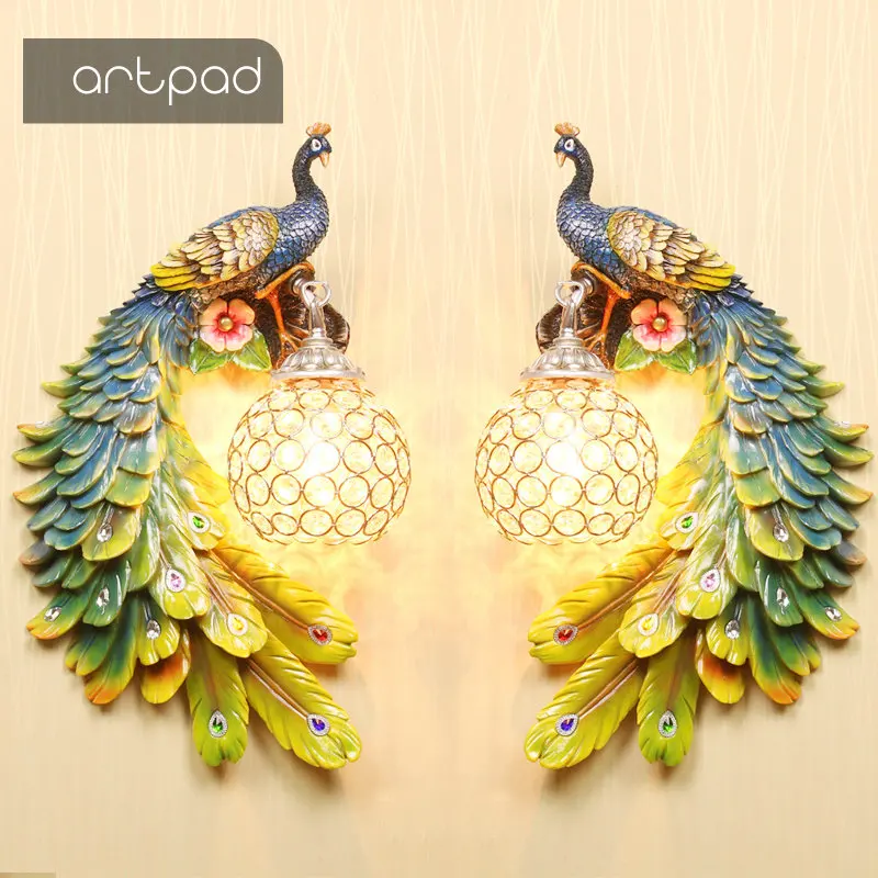 Artpad Rustic Wall Light Retro Bohemia Peacock Resin Wall Lamp Bar Hotel Coffee Shop Decoration Indoor Lighting Bulb Included