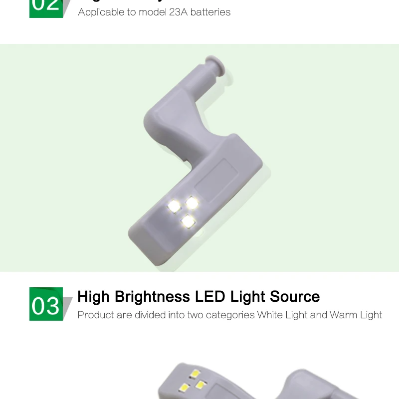 The cabinet light has 3pcs led beads and it is operated by 23A 12V battery(not included)