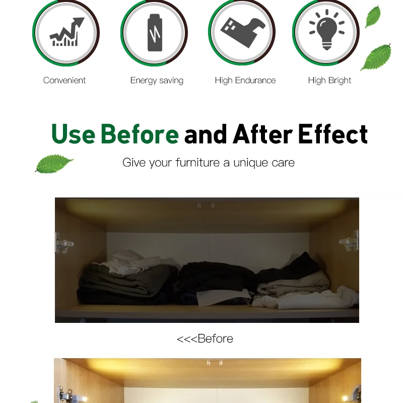 Intelligent induction, when opening the cabinet, lamp will turns on automatically. When closing the cabinet, the light turns off.