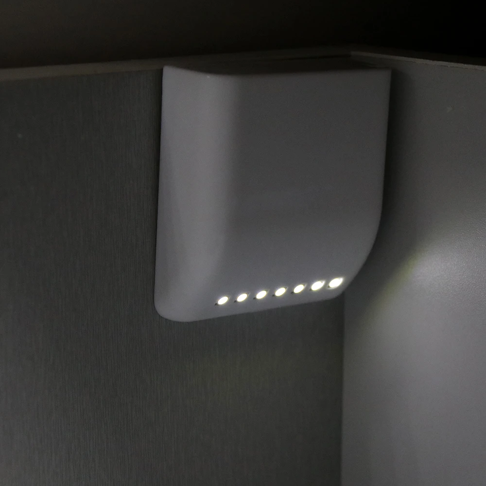 This LED cabinet light in built-in a sensitive touch sensor system, install this light on your cabinet door, when open your cabinet, it will automatically light up the entire cabinet.