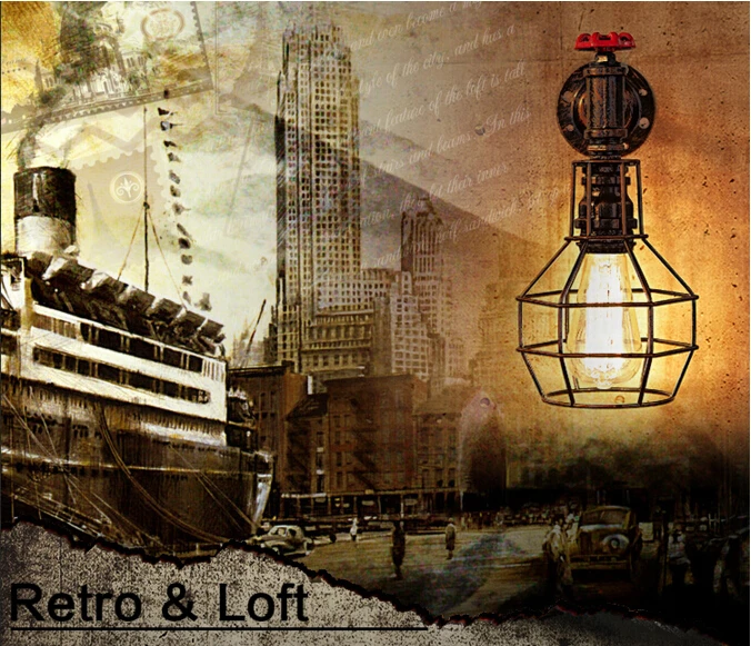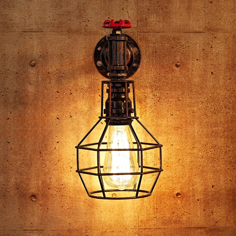 Special Offers Loft Style Iron Cage Water Pipe Lamp Edison Wall Sconce Industrial Vintage Wall Light Fixtures For Home Indoor Lighting