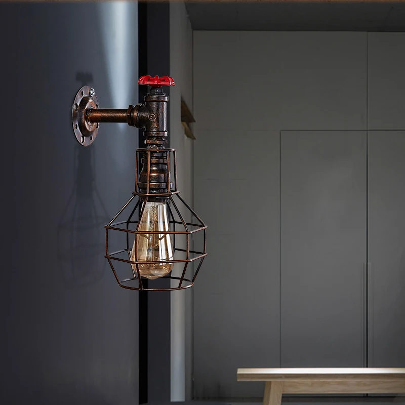 Loft Style Iron Cage Water Pipe Lamp Edison Wall Sconce Industrial Vintage Wall Light Fixtures For Home Indoor Lighting