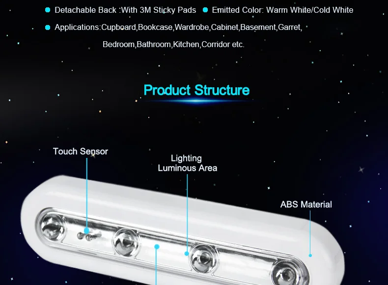 LED Light Portable Night Lamp Wardrobe Light Touch Sensor Led Armario For Cupboard Closet Kitchen Bedroom Cabinet