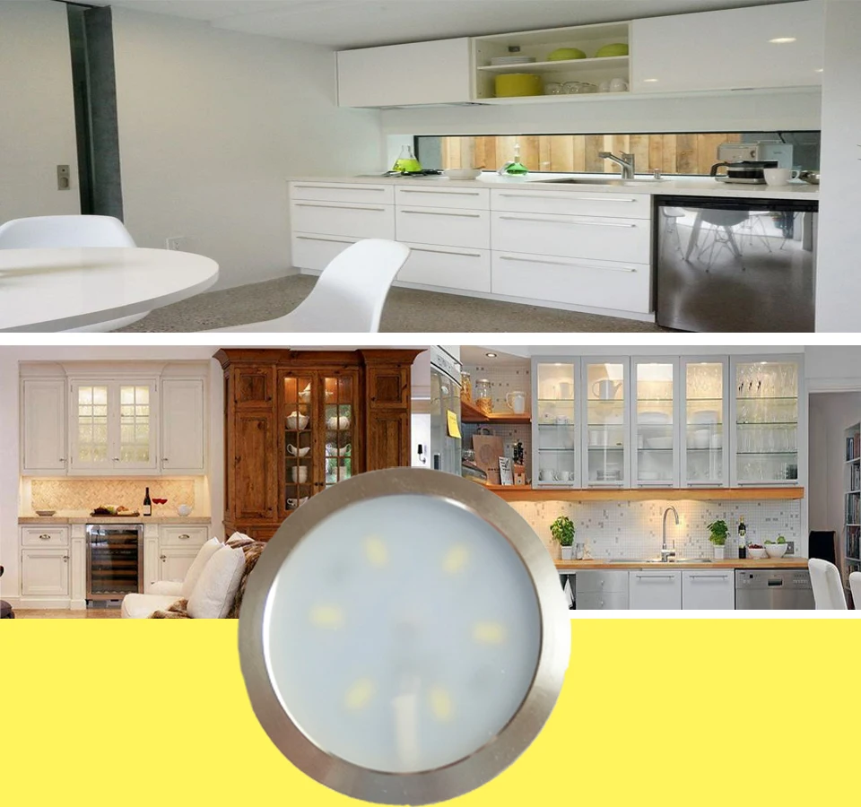 Ultra Thin LED Under Cabinet Lights Closet Light 2.5W DC12V Round Kitchen Bookshelf Showcase Surface Mounted Furniture Lighting
